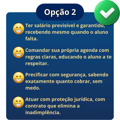 Esses são os 3 passos para você receber seu pagamento em dia, se proteger juridicamente e organizar seu portifólio de alunos: